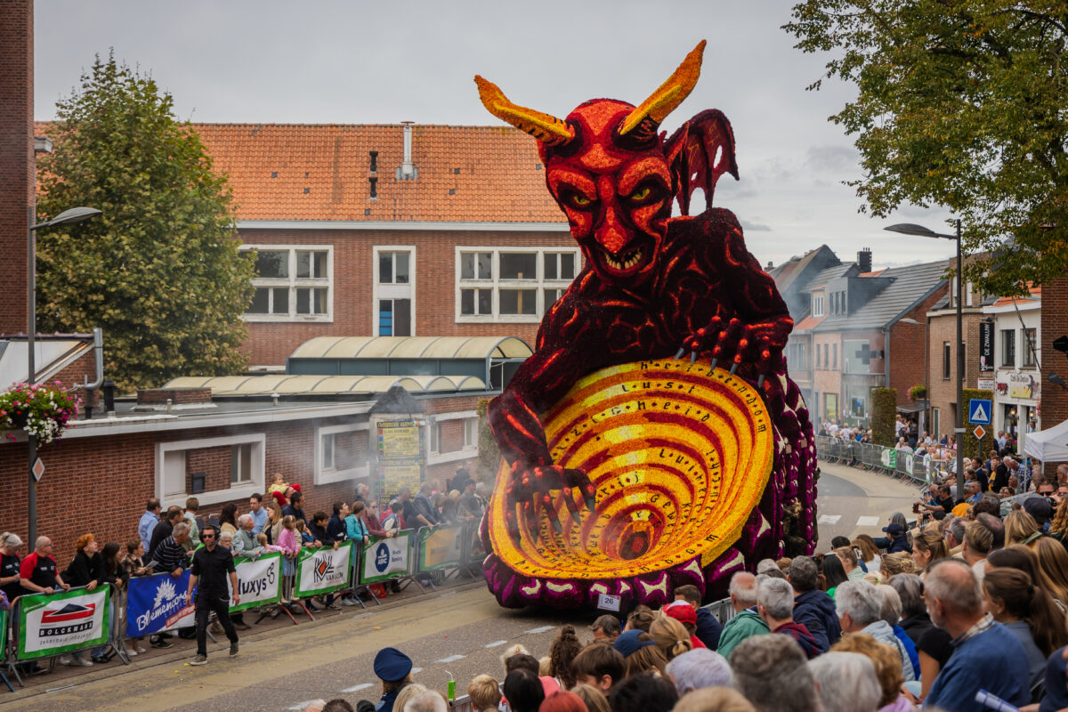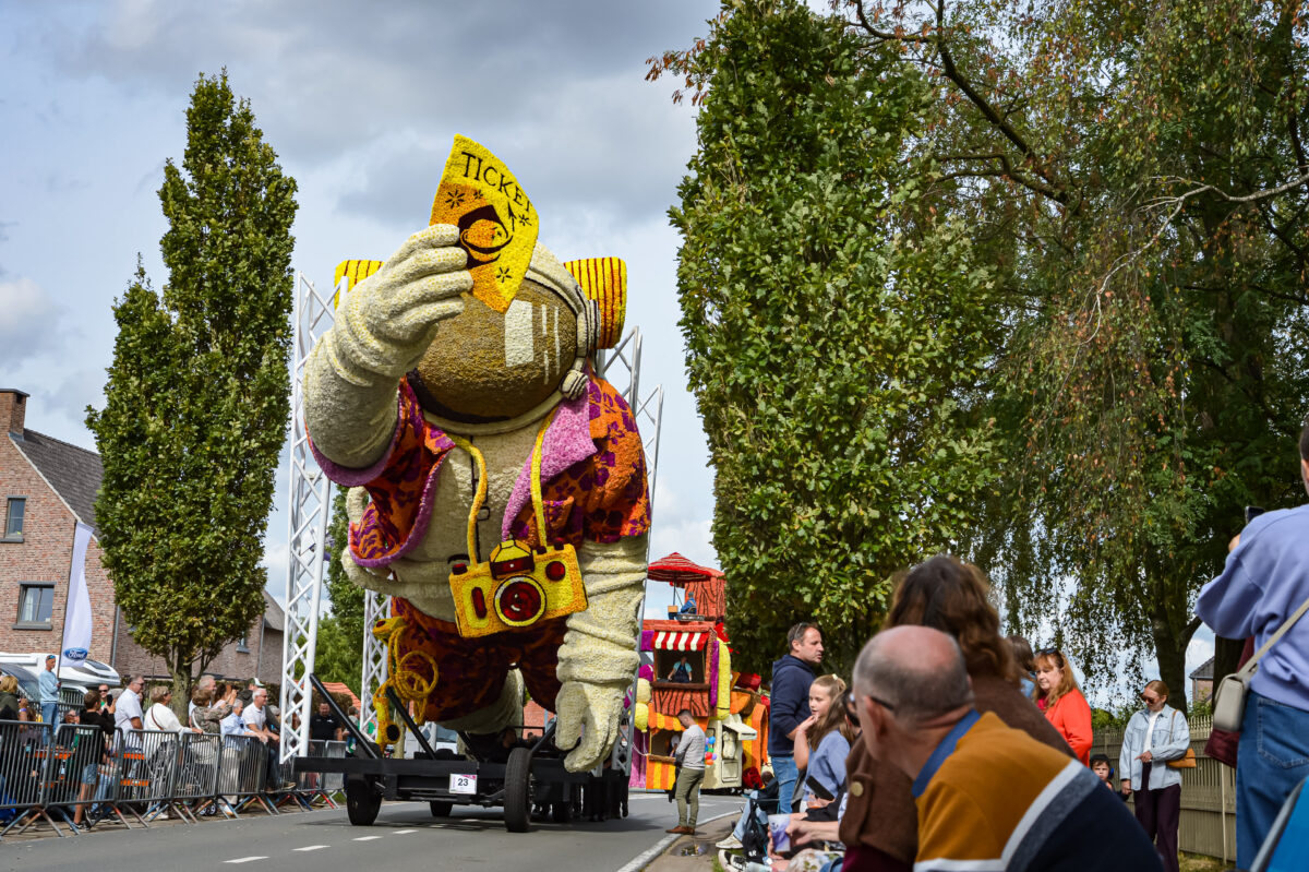 Gedurende het 2de weekend van september wordt elke bloemenwagen bekleed met ongeveer 250.000 dahlia’s. In totaal worden meer dan 4 miljoen dahlia’s verwerkt in de praalwagens.